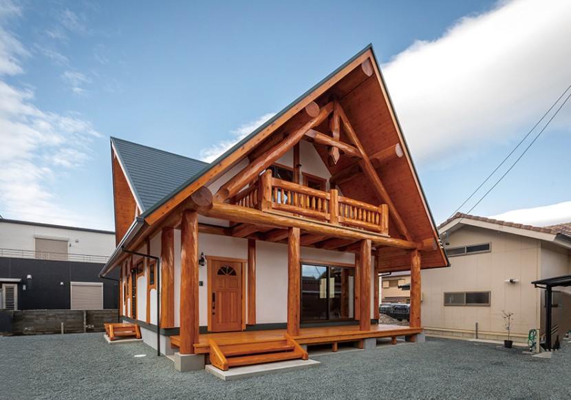 【ポスト&ビーム】太い丸太の味わいと暮らしやすさを両立した住宅街に調和する住まい
