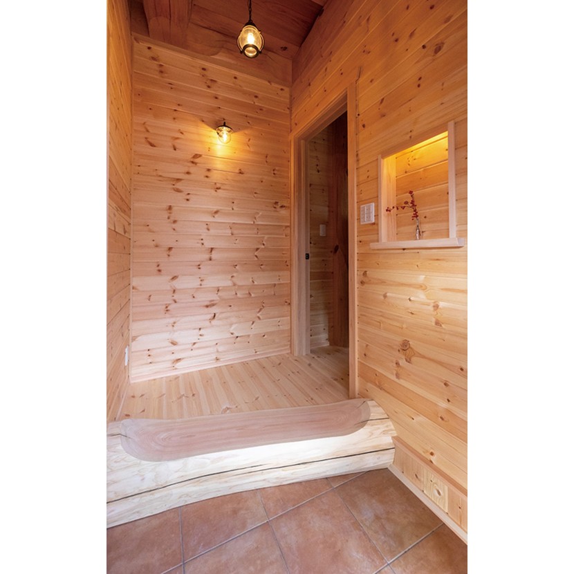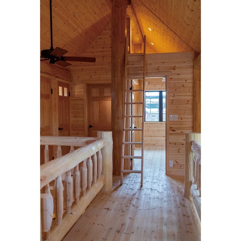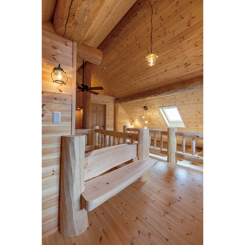 幼い頃の将来の夢は「木で何かを作る人」だったというご主人。学生時代にハンドカットログのゲストハウスに宿泊してそのあたたかみに魅了され、ログで家を建てる夢を長年あたためてきた。選んだログハウスメーカーは、自社の山林や加工場を持つキハタトレーディングだ。「木材を加工する様子を見学し、その迫力に圧倒されました」とご夫妻。