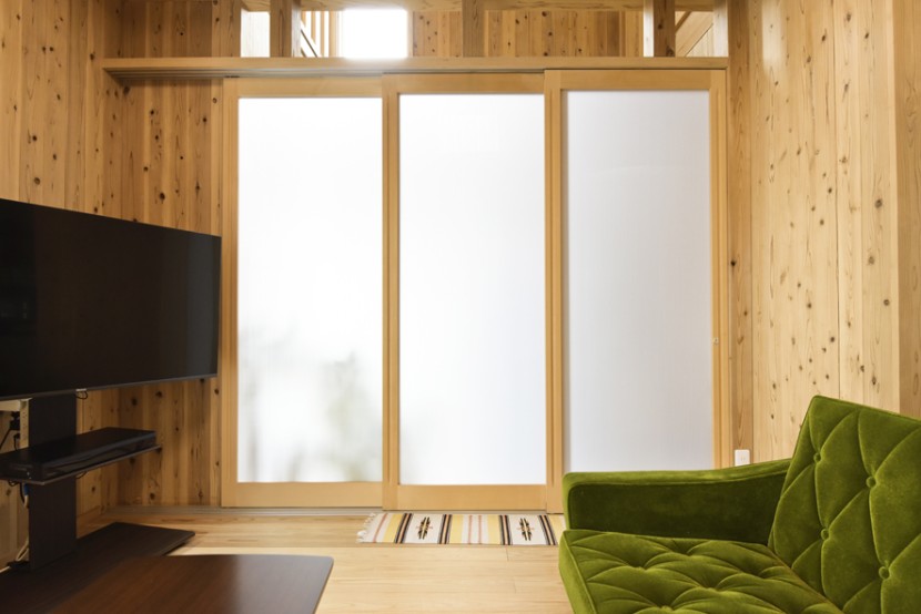 土間とリビングは、半透明の引き戸で仕切ることもできる。当初は設ける予定はなかったが、建築中に変更してつけることにしたそう