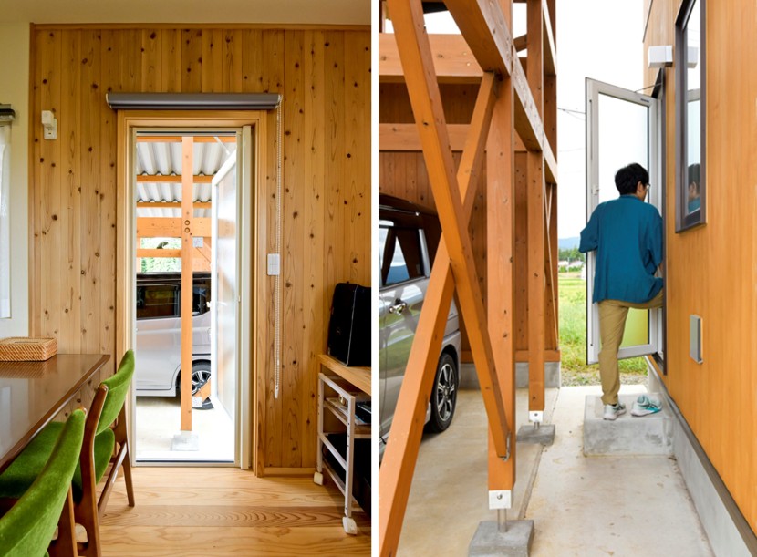 ダイニングの勝手口を出ればすぐガレージ。買い物帰りに荷物が運び込みやすく、雨や雪が降っていてもぬれずに出入りできる