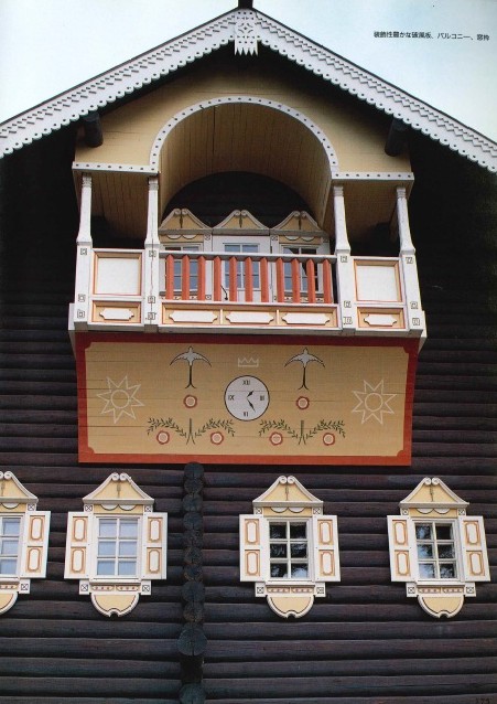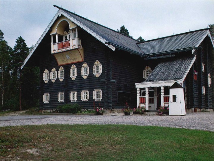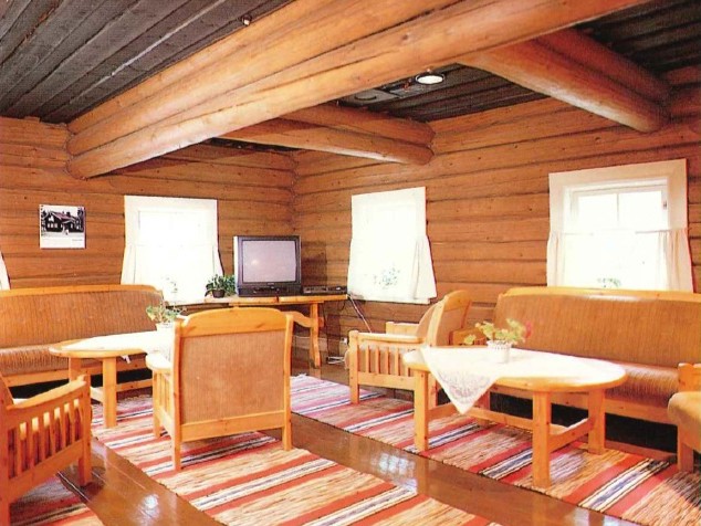 1棟ごとに違う窓周りや、飾りがあるテラスは、カレリア地方独特の色使いのペイントで飾られ、細かい細工なども見事である。働く人々の衣装や、レストランのメニューもカレリア地方の伝統をそのまま生かしている。メインロッジは、このカレリア地方の豪農の住まいであった。家長の権限が強く、大家族制であったため建築は、大規模なものだ。1階は、牛や馬などの家畜用のスペースとして使われ、2階が住居となっていた造りを上手に工夫して、手を加えず利用しているので、外観だけでなくインテリアも個性的である。