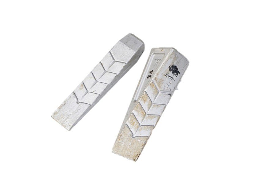 アルミ製の軽量クサビ。左は通常のストレートタイプ。右はひねりがある形状で、回転し薪を割り広げながら進むツイストタイプ。