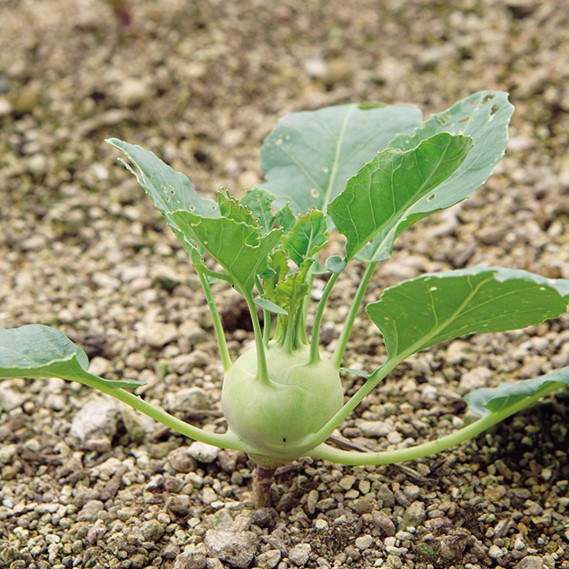 球形にふくらんだユニークな茎と美しい色合いが、欧米で特に人気のあるキャベツの仲間。オブジェのような感覚で飾りながら栽培が楽しめます。キャベツより低温、乾燥によく耐えるので栽培が容易です。