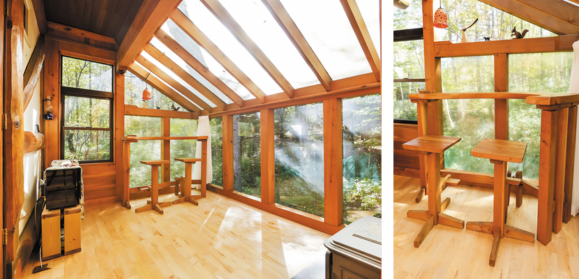 このログハウスは1988年に完成。以来、東京ではできない木工や自然観察などを楽しんできた。「ログハウスの中は別世界。本当に心が休まります。まったく飽きませんね」と森田さん。真冬にサウナで汗を流し、素っ裸で裏手の森に面したテラスに出て涼むのもお気に入りだ。