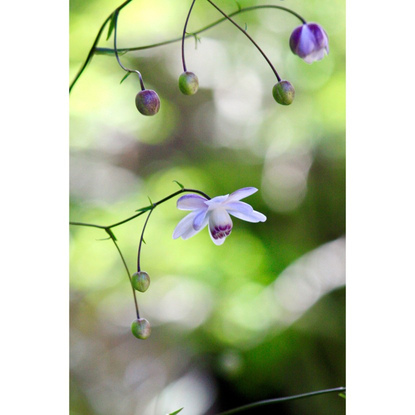 近くのお寺の参道に、毎年可憐な姿を披露してくれるレンゲショウマ。 木陰で涼しげに咲く山野草で、「森の妖精」とも言われるそう。 花は3~4センチほど、まん丸のつぼみもとっても可愛くて、 風が吹くとゆらゆら…。 お参りする人たちに優しく会釈をしているみたいです。