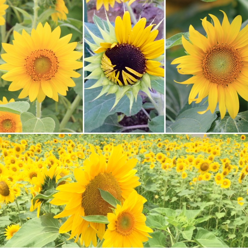 元気をもらいに、ひまわり畑に行ってきました。 ここは、保育園のすぐ近くにあり、 園児のために、ひまわりの迷路にしています。 ひまわりにも色々な品種がありますね。