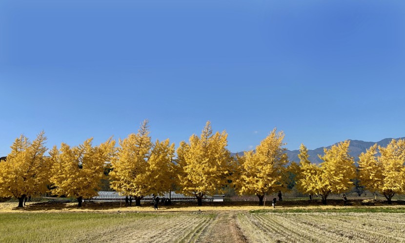 毎年見に行きたくなるイチョウ並木。 1983年、地域の方々が植えたのが始まりだったそうです。 中央アルプスを背にした 2種類のイチョウ約30本の並木道をゆっくり歩いて、 秋を満喫させてもらいました。