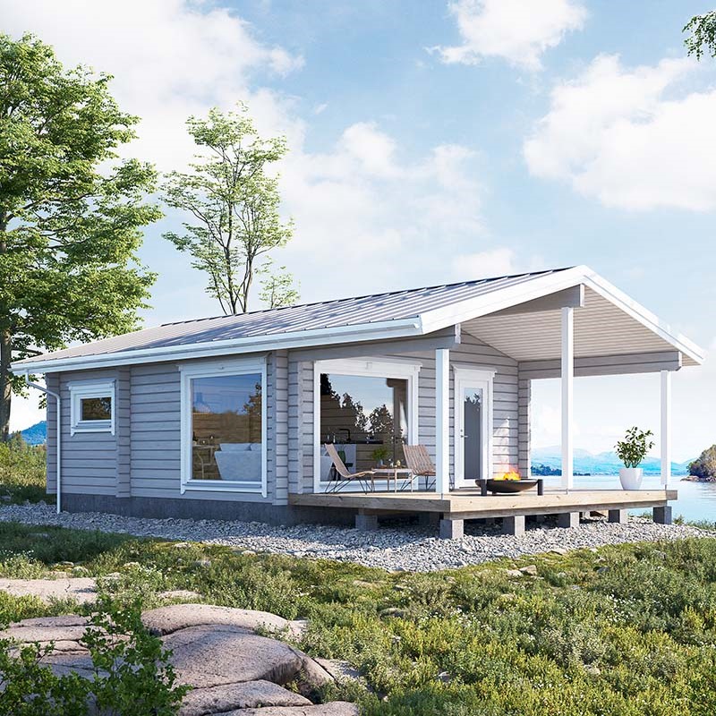 サウナキャビンHYTTIは、広さは約45㎡とコンパクトながらも、寝室とLDK、そしてなんといっても広々としたテラスでサウナ・ライフを満喫できます。HYTTI(ヒュッティ)は、フィンランド語で「コンパートメント」。寝台列車の「コンパートメント」のようにコンパクトなキャビン。このモデルの特徴でもある大きな窓と大きなテラスで、十分に広く感じることができます。サウナ室に、大きな窓があるLDK、プライベートが保てる寝室、そして外気浴を楽しめるテラスで「サウナのある暮らし」を満喫できます。