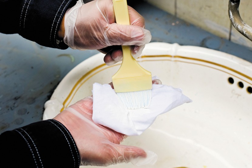 水性塗料を使用したあとのハケは、まずウエスなどで余分な塗料をなるべくふき取る