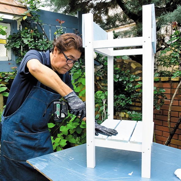鉢植えや雑貨を飾るスタンドがあれば、高低差を生かした立体的な演出が可能に。DIY好きなベテランガーデナーの野々山さんに、素敵な木工作品の作り方を教えてもらった。ぜひチャレンジしてみてほしい。