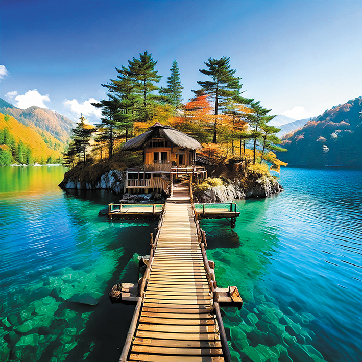 どこか山奥の湖に浮かぶ小島に、こぢんまりとしたログハウスを建てたい。島のサイズは大きすぎるとおもしろくないので、100~150坪くらいでOK。水遊び用に長い桟橋をつけるのも楽しそう。でも桟橋は湖岸には接しない形にして、アクセスにはカヌーなどの小舟が必須にする。長期休暇には食料や日用品を持ち込んでここにこもる。読書やルアーフィッシング、カヌーなどをして下界となるべく交わらず静かに暮らすのが理想。デジタルデトックスを目指して、パソコンやスマホも持ち込み禁止にしようかな。